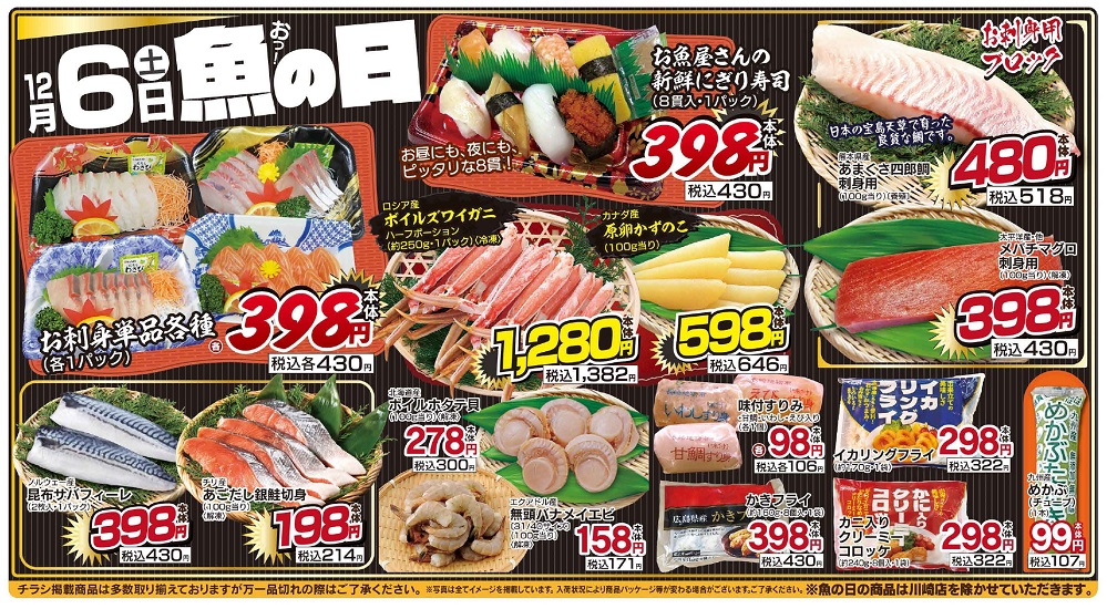 ※魚の日の商品は川崎店を除かせていだたきます。