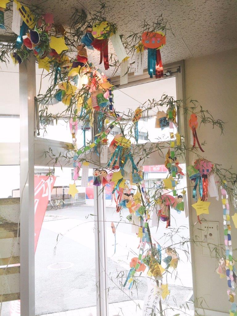 7月7日七夕までの間、地域の幼稚園「志井幼稚園」の園児達のお願い事を書いた短冊を店内にて設置しております。