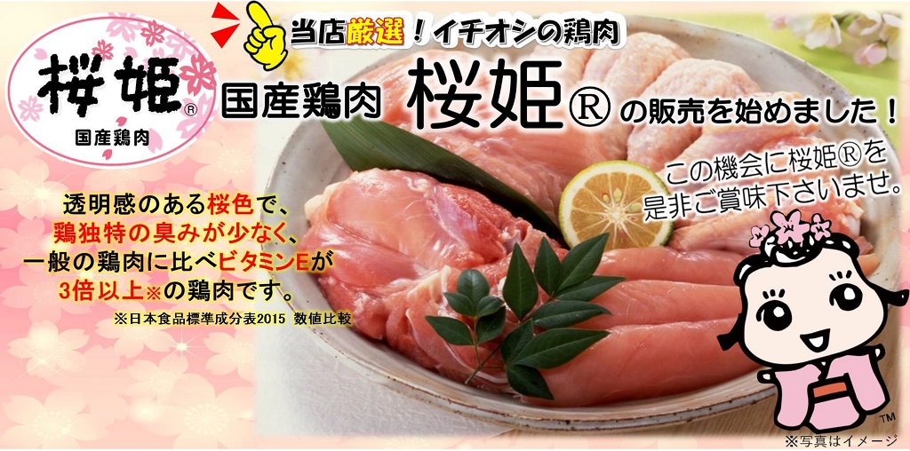 「食彩館」赤池店 こだわりの国内鶏肉『桜姫』の販売を開始
