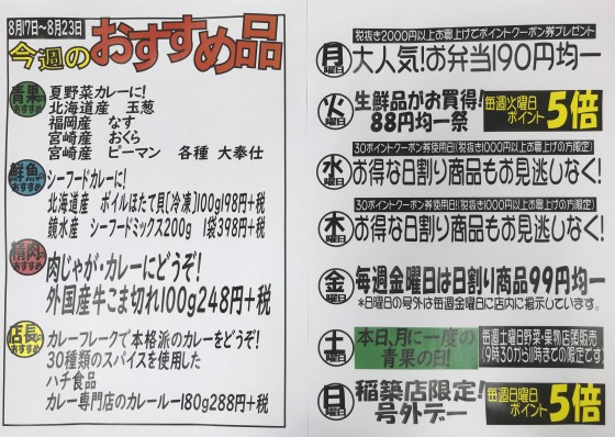 8/17(月)~8/23(日)のおすすめ品の紹介です![]()