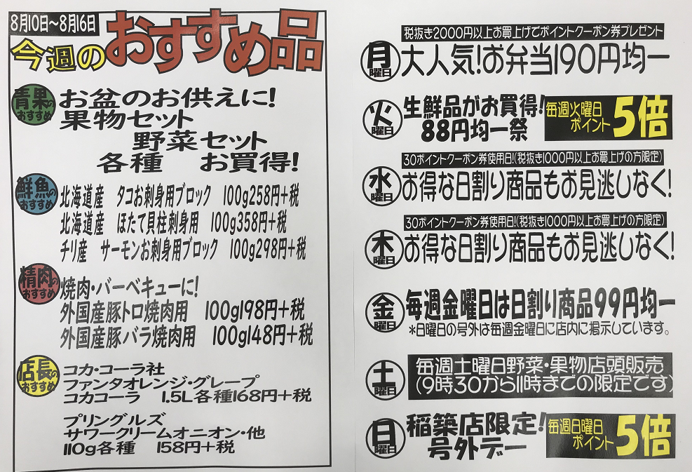 8/10(月)~8/16(日)のおすすめ品は・・・?