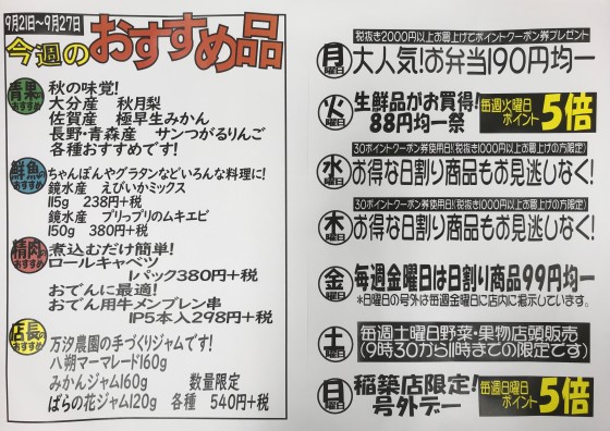9/21(月)~9/27(日)稲築店のおすすめ品(≧▽≦)
