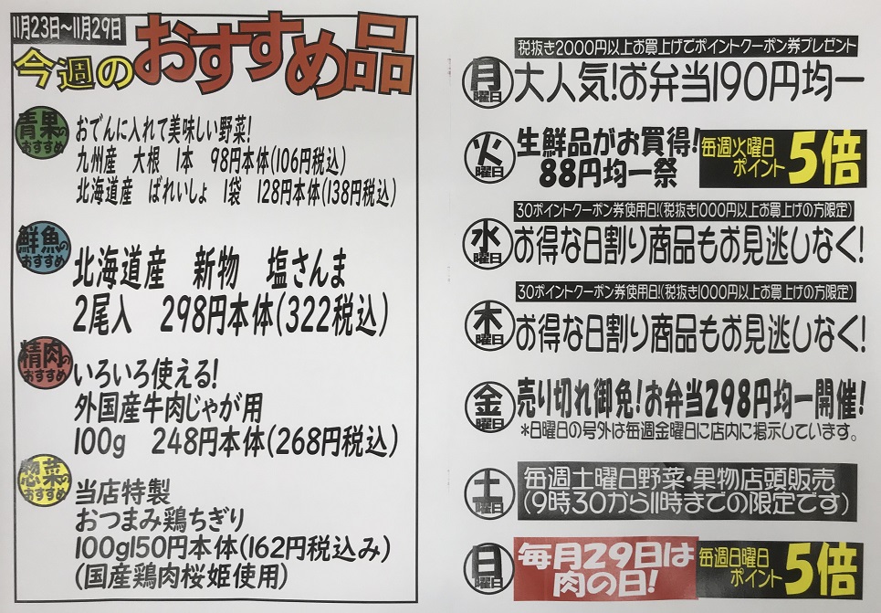 11/23(月)~11/29(日)今週のおすすめ品は❓