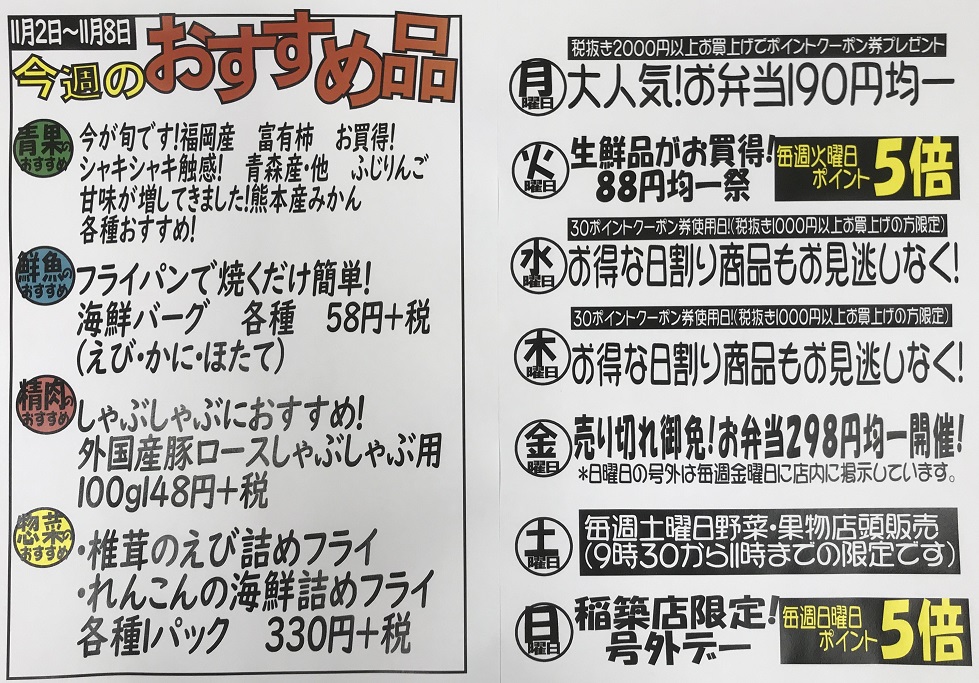 11/2(月)~11/8(日)今週のおすすめ品は![]()