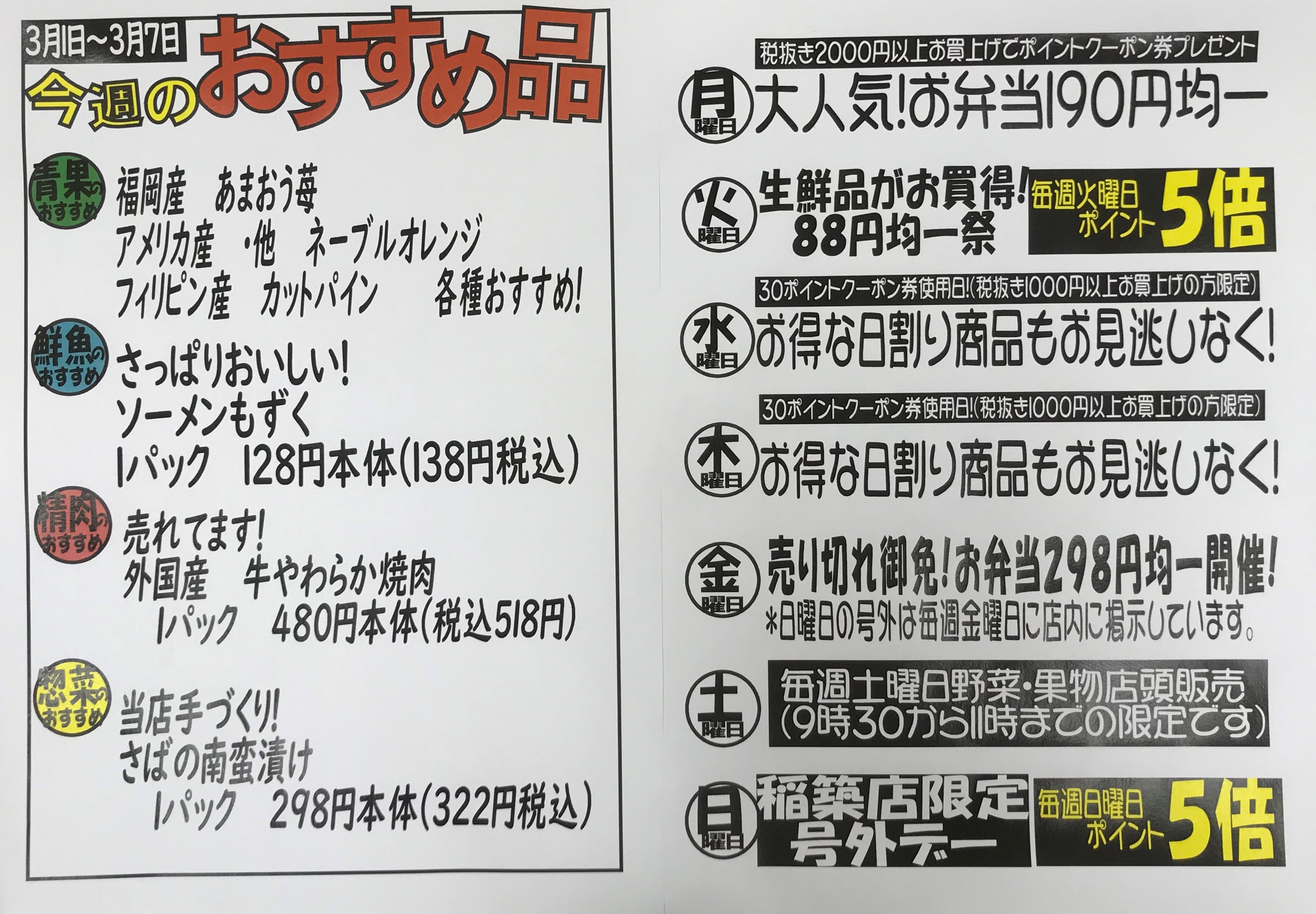 3/1(月)~3/7(日)のトレードマート稲築店のおすすめ品。。。