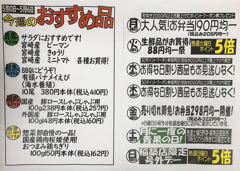 5/10(月)~5/16(日)のトレードマート稲築店のおすすめ品