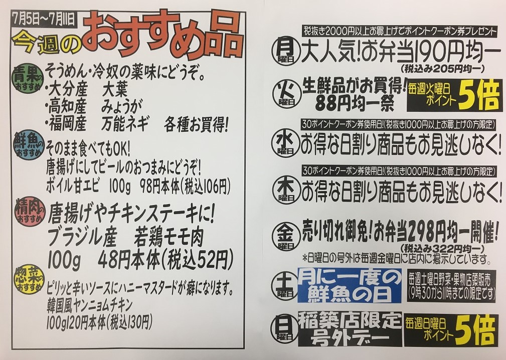 7/5(月)~7/11(日)のトレードマート稲築店のおすすめ品
