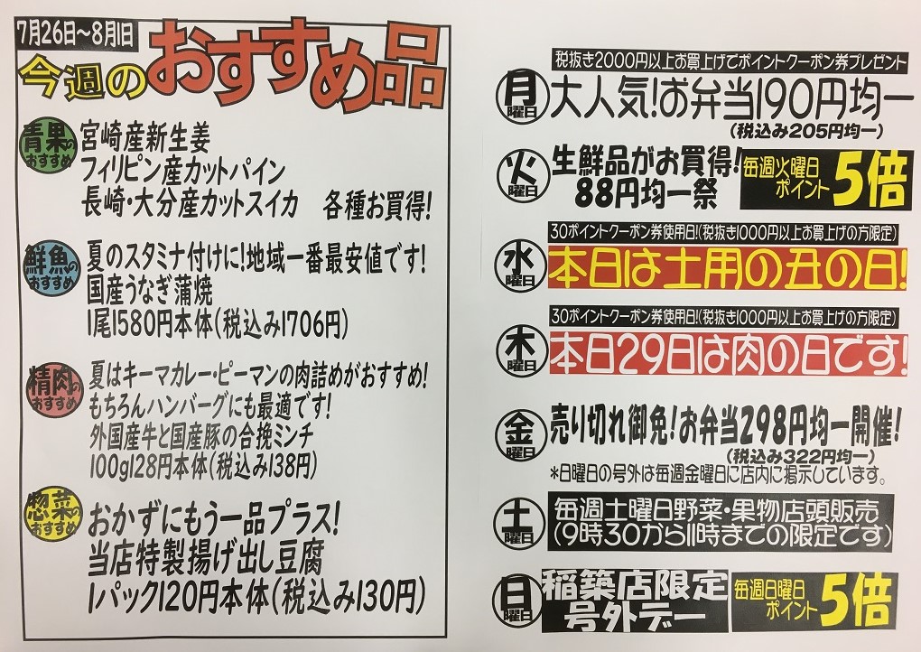 7/26(月)~8/1(日) トレードマート稲築店『おすすめ品』