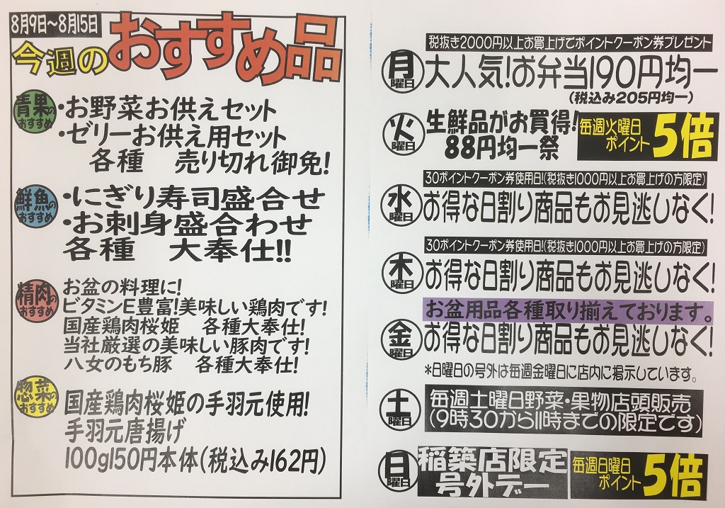 8/9(月)~8/15(日) 『おすすめ品』(^O^)/
