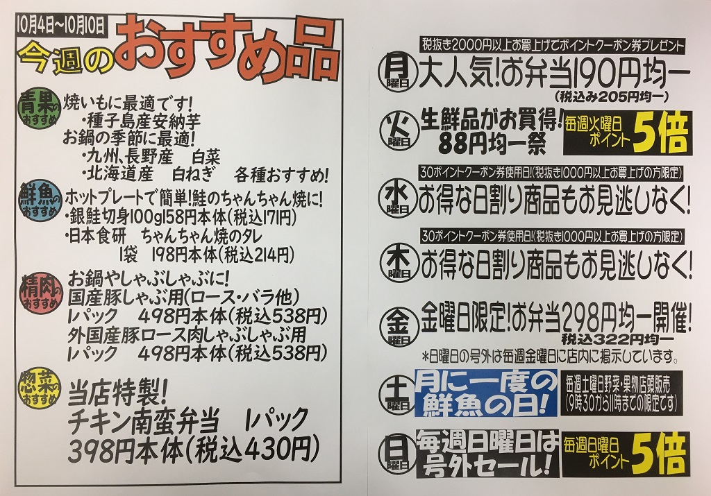 10/4(月)~10/10(日)のおすすめ品紹介!!