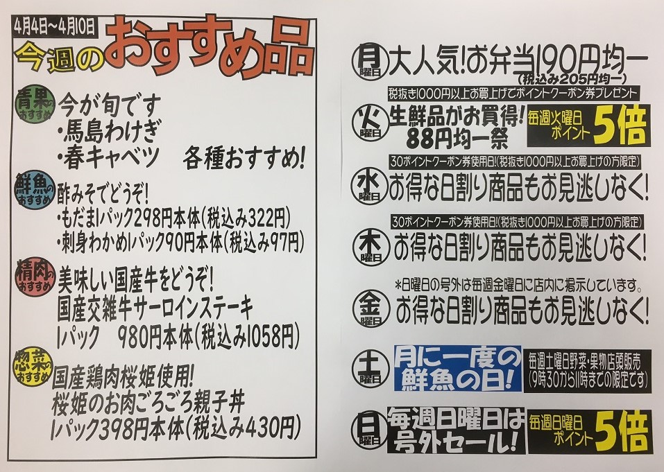 4/9(土)・・・月の一度の⦅鮮魚の日⦆です。