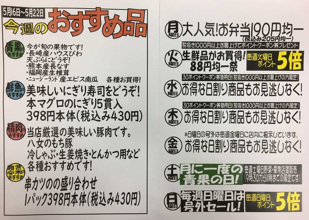 また、毎週土曜日は店頭にて〔野菜・果物〕も販売中!!