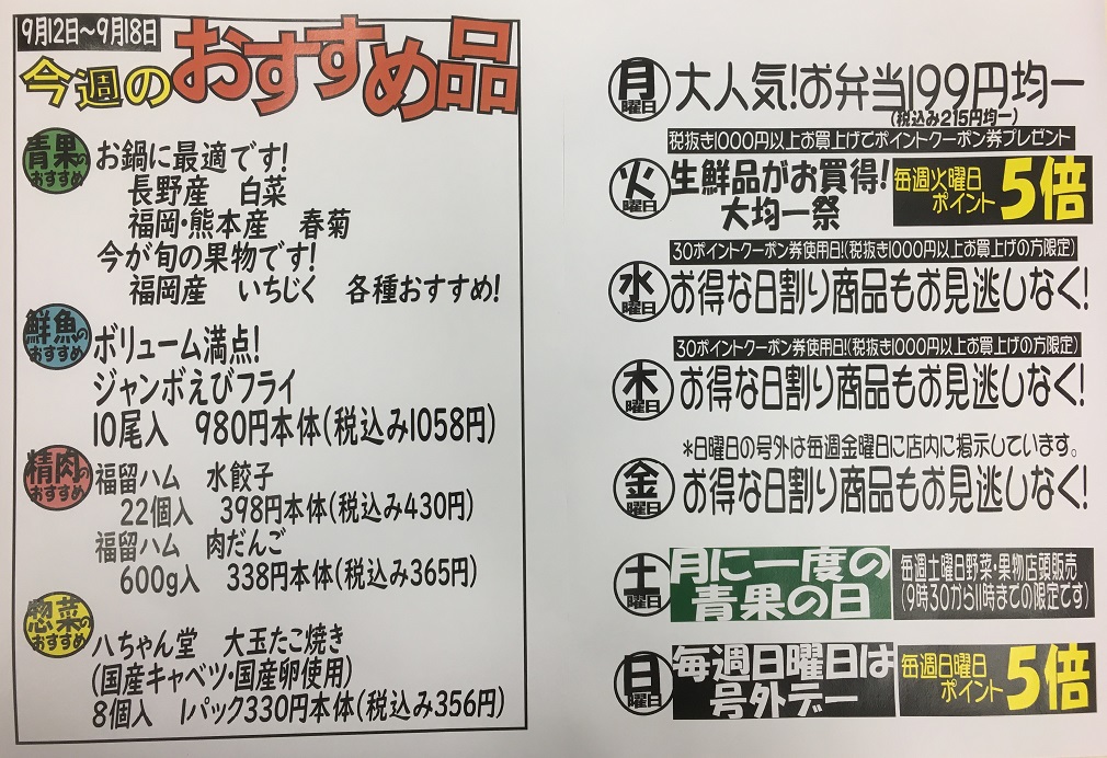9/12~9/18のおすすめ品![]()